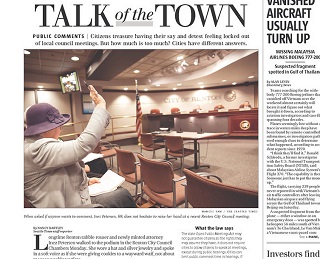 The Seattle Times has a feature on the people who regularly make it their business to speak at local government hearings. The question is how much is too much? While some cities have opted for private meetings within the boundaries of the law, others are going the opposite direction by installing software allowing citizens to comment from home during hearings.