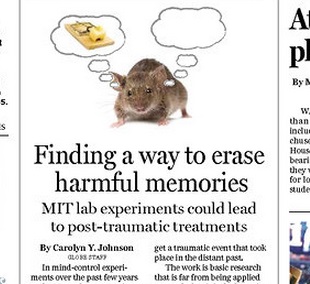 Researchers at the Massachusetts Institute of Technology have come up with a drug that helped mice forget a painful memory from the past. The Boston Globe says the research is far from being applied to people, but it does offer promise that we will one day have better ways of treating conditions such as Post Traumatic Stress Disorder.