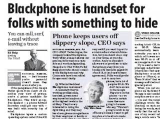 USA Today’s Ed Baig reviews the Blackphone. He calls it the handset for people with something to hide. The phone works by using a custom operating system and a suite of applications that allow you to make calls, exchange text messages and browse the web anonymously. Baig says the phone is not quite ready for the mainstream yet, but it is well-suited for those who need the highest levels of privacy.
