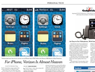 The big three newspaper tech columnists, USA Today‘s Ed Baig, Walt Mossberg of the Wall Street Journal and the New York Times’ David Pogue, all deliver Verizon iPhone reviews this morning. And they are all remarkably consistent in their comments. The main point in favor of the Verizon iPhone is that it was noticeably more reliable on voice calls. All three reviews note fewer dropped calls with Verizon than with AT&T. Writes Pogue: “At a Kennedy airport gate, the AT&T phone couldn’t even find a signal; the Verizon dialed with a smug yawn.”