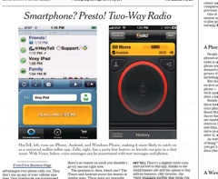 Old technology meet new technology. David Pogue reviews a new crop of walkie-talkie apps for smartphones in the New York Times this morning. He says before you dismiss the walkie-talkie apps as gimmicks, consider when they could be helpful: If you’re driving, they’re way more safe than texting and in general talking is more accurate and expressive than typing.