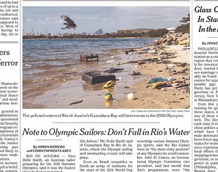 The New York Times says with only two years until the games, the waterway slated for sailing and windsurfing events at the summer Olympics in Rio remains incredibly polluted. One biologist called it a “latrine” while a sailor said he’d seen bodies in the water. The Times says well-financed efforts to clean up the bay have been hampered by mismanagement and allegations of corruption.