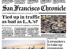How dare they! San Franciscans are outraged that their city’s traffic has tied, gasp, Los Angeles as the second worst in the nation according to a new study. The Texas Transportation Institute’s Urban Mobility Report puts both California cities in second place behind this year’s winner, DC. The Chronicle protests that while the “Southern California parking lots called a freeway” are congested simply because of so many cars, San Francisco’s congestion has more to do with stalled by bridges, tunnels and toll collection.