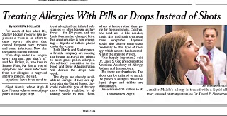 The century-old method of treating allergies with injections may soon be a thing of the past. The New York Times says two companies are petitioning the FDA for approval of tablets that treat grass pollen allergies. The drugs are already available in Europe. They allow patients to treat their allergies at home, instead of having to make frequent trips to the doctor for injections.