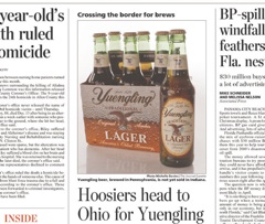 Bar patrons on the East Coast take the presence of Yuengling for granted. The Fort Wayne Journal Gazette says Indianans with a taste for the Pennsylvania brew are heading to Ohio to get their fix, after it became the most westward state to sell Yuengling in October.