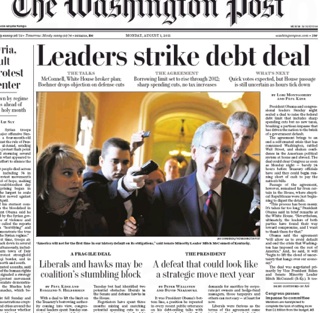 USA Today says the deal may have staved off a default by the US government, but it left political damage in its wake. The paper says during the course of his dealings, President Obama “has seen his approval rating fall to a new low, his political adeptness questioned and his liberal base enraged over compromises he made on line-in-the-sand issues such as protecting Medicare from cuts”; Speaker of the House John Boehner learned the hard way that he didn’t have as much influence as he thought he had.