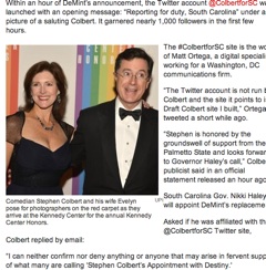 Is Steven Colbert serious about running for the Senate? Or maybe more importantly, are we ready for Sen. Steven Colbert? Hours after news that South Carolina’s Sen. Jim DeMint was stepping down the run the American Heritage Foundation, a Twitter account was championing the Comedy Central host as his successor. When asked by the New York Post if he was affiliated with said account, Colbert replied: “I can neither confirm nor deny anything or anyone that may arise in fervent support of what many are calling ‘Stephen Colbert’s Appointment with Destiny.’”