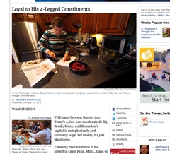 Every time I go to Canada, I fly home with a personal supply of my favorite cereal, Shreddies. The New York Times says Montana Senator Jon Tester has a similar hobby. Apparently, every time he flies to DC, he comes with meat—“roasts, ribs, round steak and (his favorite) rib steak”—from his ranch.