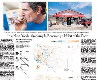 The New York Times reports on a new analysis of smoking data that finds it’s increasingly becoming a habit of the poor. Smoking has seen huge declines in more affluent counties across the country, but smoking rates have remained the same in poorer counties. That gap in smoking rates among the rich and poor is contributing to inequality in health outcomes.