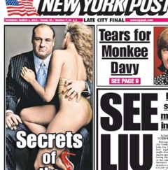 I don’t entirely understand why a naked woman is wrapped around James Gandolfini on the front page of the New York Post this morning, but the headline mentions “secrets of the Sopranos”. Inside the paper, the actor says he too was initially baffled by the way the series ended. It’s an excerpt from a Vanity Fair article, a “wide-ranging oral history of the HBO show.”