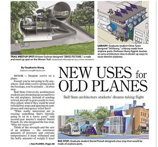 The Indianapolis Star says Architecture students at Indiana’s Ball State University are imagining new ways to recycle old airplane parts. From bus stops to houses - students are dreaming up ways to use parts that would otherwise end up rusting away in an airplane graveyard. Students say airplanes’ strength, size and ability to withstand extreme pressure and temperatures would make them ideal to many applications.