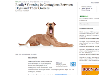 It’s common knowledge that seeing someone yawn will elicit a yawn from your own mouth. But the New York Times says a new study has proven what pet owners have often suspected: yawning is contagious among dogs too. Humans tend to mirror a yawn as a sign of empathy. And after studying two dozen breeds, researchers have found that dogs do too. But they’re not fooled a fake yawn. In the study, dogs only yawned when they saw a real one, not when someone simply stretched their arms and opened their mouth.