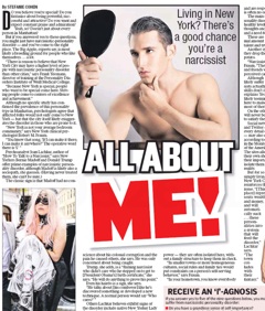So are you a narcissist? Luckily the Post reprints a checklist from the American Psychiatric Association’s Diagnostic and Statistical Manual of Mental Disorders IV to help determine whether or not you have narcissistic personality disorder: Answer yes to five of the nine questions below, and you may as well coin your own hairstyle or run for president: