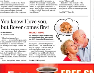 I hope this survey was anonymous. According to a recent AP poll, 14 percent of Americans said if they had to choose between their pet and their spouse, they’d chose their pet. Wow. The Columbus Dispatch tracked down one woman who summed up her logic this way: “I can always find a new spouse, but a good German shepherd’s hard to find.” The numbers were higher for unmarried pet owners—25 percent said they would choose their animals over their human partners.