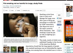 Smoking a joint from time to time isn’t so bad for your lungs, say researchers at the University of California. The San Francisco Chronicle says the new study found that only heavy marijuana smokers—those who smoke more than 20 joints a month—were doing serious pulmonary damage to their bodies.