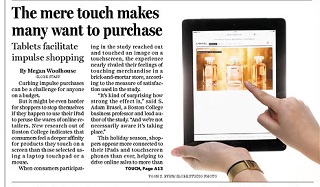 The Boston Globe says new research out of Boston College finds consumers feel a deeper affinity towards products they “touch” on a touchscreen than items they clicked on using a mouse or touchpad. Researchers found using a touchscreen brings up satisfaction levels that rival actually touching products in a store. The study found subjects were even more attached to items they purchased using their own iPads rather than borrowed ones.