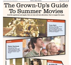 The Wall Street Journal has a “Grown Up Guide to Summer Movies” in today’s paper. If “Men in Black”  isn’t quite your style, you might want to check out the new Woody Allen movie set in Rome.  Or “The Intouchables,” a French movie I saw at a screening a few weeks ago. My review: It’s fantastic. And I’m not normally someone who likes subtitled movies.