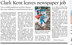 Even Clark Kent thinks journalism has seen better days. The Chicago Tribune says Superman quit his job at the Daily Planet in the latest issue of the comic series which hit shelves yesterday. He actually walks out, mild-mannered though he is, decrying the state of journalism as he goes. Apparently, his anger is directed at both Lois Lane for covering a sex scandal and at his boss Perry White for “pandering to the public demand for entertainment instead of providing news.”