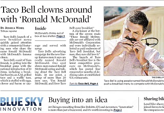 Taco Bell has a new pitchman - Ronald McDonald. A new commercial touting Taco Bell’s breakfast menu features men named Ronald McDonald all saying they love Taco Bell’s new breakfast. The Chicago Tribune says McDonald’s responded via Twitter with a tongue-in-cheek tweet, “Mayor McCheese confirms: Ronald, in fact, still prefers McDonald’s.”