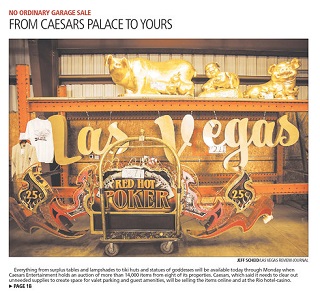 It’s no ordinary garage sale. Caesars Entertainment is selling off 14,000 items from its properties, including Caesars Palace, Planet Hollywood and the Rio. Hotel furniture, kitchen equipment and other practical items are mixed in with more eccentric finds. The items are on view at the Rio and bids can be placed online.