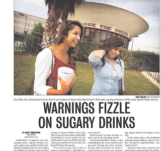 Maybe they need a visit from Mike Bloomberg. Teenagers in California are drinking more sugary drinks these days, according to the Press-Enterprise. Almost two-thirds of teens in 2011-2012 reported drinking soda or energy or sports drinks every day. This comes despite aggressive public health campaigns warning of the link between sugary beverages and obesity.
