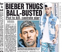 Police have thwarted a plan to murder and castrate Justin Bieber. Or as the New York Post says, “they arrested these nuts just in time.” Apparently a crazed fan hired two men to off the pop star and relieve him of his testicles, with each commanding a $2500 pricetag. The fan—a 45-year-old man with a tattoo on the Biebs on his leg—is serving time in New Mexico for four other murders.