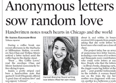 ‘Tis the season for anonymous love letters. And you can thank a 24-year-old woman named Hannah Brencher for that, says the Chicago Tribune. Last year, Brencher started a project called the World Needs More Love Letters, which—you guessed it—puts anonymous love letters in public places around the world for strangers to find. Since the project started more than 5,500 handwritten notes have been distributed.