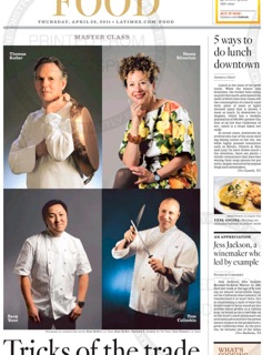 If you love to cook, you’ll want to check out the series of monthly Master Class columns the LA Times kicks off in its food section today. The paper asked four famous chefs to write articles detailing some of the tricks they’ve learned from their years in the kitchen. Thomas Keller is up first, with tips on how to salt and season your food. In addition to walking readers through the difference between a dry and a wet brine, Keller demystifies the “season with salt and pepper” endnote that appears in virtually every recipe. Nancy Silverton, Tom Colicchio and Sang Yoon will offer their own advice in coming months.