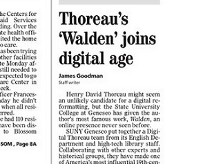 Henry David Thoreau’s Walden has been given a digital treatment allowing the classic work to be examined in all of its complexity. The Rochester Democrat and Chronicle says a team from the State University College at Geneseo worked with experts and historical groups on the project. Readers can go to digitalthoreau.org to explore how the final version of Walden compares with any of Thoreau’s previous six drafts.