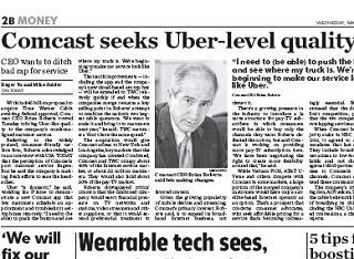 Comcast CEO Brian Roberts is vowing to bring “Uber-like” quality to his company’s customer service. USA Today says Roberts wants customers to be able to track their cable service technician, in the same way Uber users can track where their cab is. Roberts is promising that improvements to Comcast’s customer service will spread quickly to Time Warner Cable if and when the two companies merge.