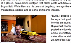 Call it an a-salt rifle. Artist Lorenzo Maggiore has invented an upgrade to the traditional fly swatter, says the Wall Street Journal. The Bug-A-Salt is a pump-action shotgun that fires table salt at enemy arthropods. Maggiore says while he had flies in mind when he created his weapon, it works equally well on any household pest. VIDEO