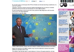 “Over to you, Your Royal Highness.” That was the intro a Scottish news anchor gave before Prince Charles took over weatherman duties on a local Scottish newscast. Charles and Camilla were in the BBC Scotland studios to celebrate the stations 60th anniversary. The Daily Mail says Camilla also took a turn in front of the green screen but that “it was her husband who clearly stole the show.” Check out the VIDEO below and decide for yourself: