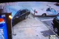 The New York Post has some dramatic video of two cop cars colliding. An undercover car and a cruiser were coming around the corner when they collided, pushing the unmarked car through the door of a laundromat. Six officers were hurt in the crash.