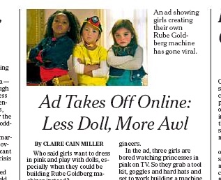 A new ad for a startup toy company that aims to encourage girls to become engineers has gone viral. The Goldie Blox ad is set to the tune of “Girls” by the Beastie Boys, a song with decidedly anti-feminist lyrics. But in the ad, the lyrics have been rewritten. The New York Times says the ad has sparked conversation about the lack of women in the technology and engineering fields.