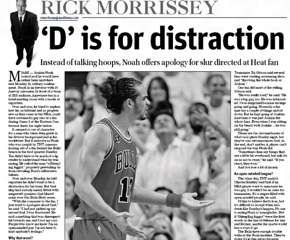 Chicago Sun-Times sports columnist Rick Morrissey asks a provocative question in this morning’s paper: why is “faggot” the NBA’s slur of choice? Kobe said a couple weeks ago; Bulls’ center Joakim Noah followed suit this week. So what gives? Morrissey traces the word back to the playground courts where he says it’s the “ultimate insult, the nuclear bomb.” He writes: “At its kindest, it means you’re a wuss. You’d think by now someone would have come up with something different, something more creative, something dealing with another topic.”