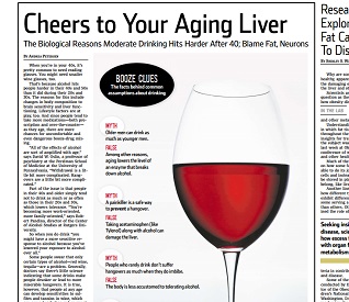 40 is not the new 30 when it comes to drinking alcohol. The Wall Street Journal examines the biological reasons even moderate drinking hits you harder in your 40s than in your 30s or 20s. You can blame changes in your body composition, brain function and your liver. You also probably have a lower tolerance since you typically don’t drink as much after 40.