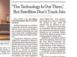 Airlines routinely use satellites to provide WiFi to passengers in-flight. But they don’t use satellites for the more routine task of tracking planes and gathering the information from flight data recorders. The New York Times says neither airlines nor regulators have adopted the use of satellites for these tasks given the cost and the general safety of air travel.