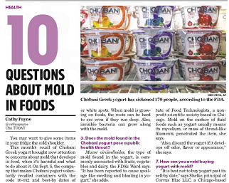 In light of the recent Chobani Yogurt recall, USA Today answers 10 questions about mold in food. It turns out, most people won’t get sick from eating a little moldy yogurt, and many people wouldn’t even feel any effects if they accidentally ate some. But you’ll still want to toss any yogurt or bread if you notice even a little bit of mold.