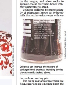 When’s the last time you snacked on some wood? More recently than you think, says the Wall Street Journal. Cellulose, which is made up of “minuscule pieces of wood pulp,” is the “new darling” of the processed food industry. Not only does it thicken and stabilize food, it can reduce fat and boost fiber content. Since it is inexpensive, manufacturers are increasingly turning to the additive in order “to give food more water, more air, [and] a creamy feeling in [the] mouth with less of other ingredients.” Nutritionists say while the idea of eating wood may gross you out, cellulose is a “harmless fiber that can often cut calories in food”; because it isn’t digestable by humans, it gives food extra weight without giving you any.