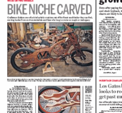 The San Jose Mercury News can’t resist a pun on its front page this morning—they “pine” for these wooden bikes. Bill Holloway and Mauro Hernandez build faux Harleys but instead metal, they work entirely with repurposed wood. The results are gorgeous, and green.