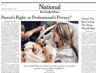 Just the other day, I received pictures of my new nephew in the Toronto delivery room where he was born. But according to the New York Times, more hospitals are outlawing cameras in the delivery room because they’re afraid parents will turn against them and use the videos as evidence in malpractice suits.