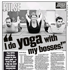 It’s the new golf. The New York Post says yoga with the boss is the newest way to get a leg up, literally. While it might seem a little inappropriate to get sweaty and contort your body like you’re playing Twister with upper management, fans of the pastime say there’s less room for embarrassment on the yoga mat than at happy hour—and it’s healthier.