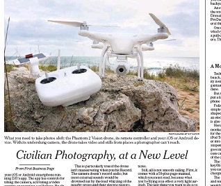 The New York Times has a review of the Phantom 2 Vision Photo Drone. Kit Eaton says the $1200 machine could be the first flying drone you may actually consider buying. It can record video and stills from a thousand feet in the air. And it has a feature that will allow it to use GPS to return home and land itself if it loses connection with its controller.